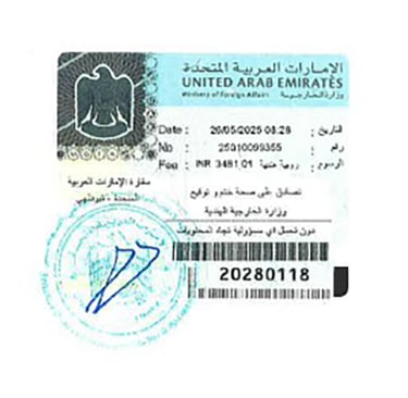 Full attestation for birth, marriage, death, educational, medical, and police clearance certificates, including MOFA and embassy stamps